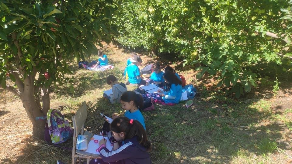 Հետո կանգ առանք խնձորի այգիների մոտ ու տեղաբնակները մեզ խնձոր հյուրասիրեցին։ Եվ իրականացրեցինք նկարչական պլեներ։
