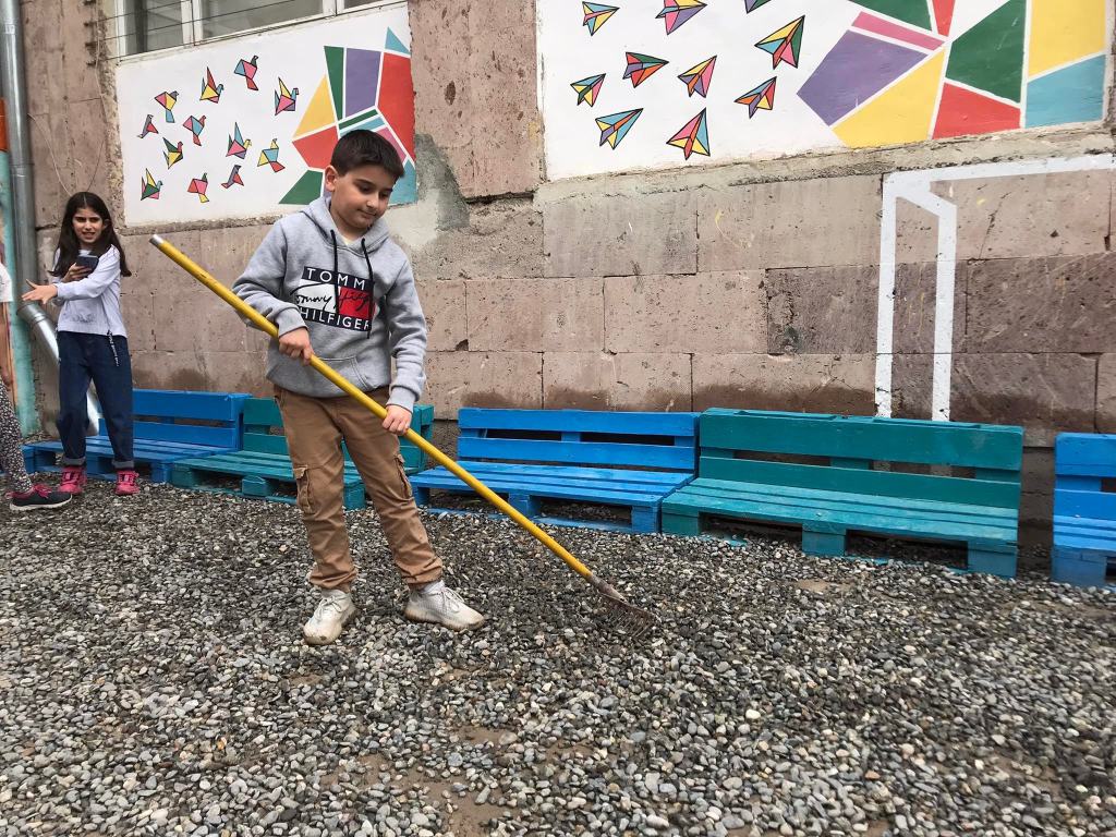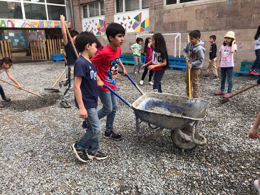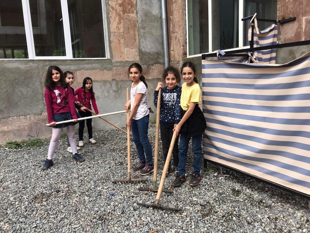 Արևմուտքի բակում աշխատանքային եռուզեռ է։ 3-րդ, 4-րդ և 5-րդ դասարանի ճամբարականների օգնությամբ բարեկարգեցինք ամառային լողափը․․