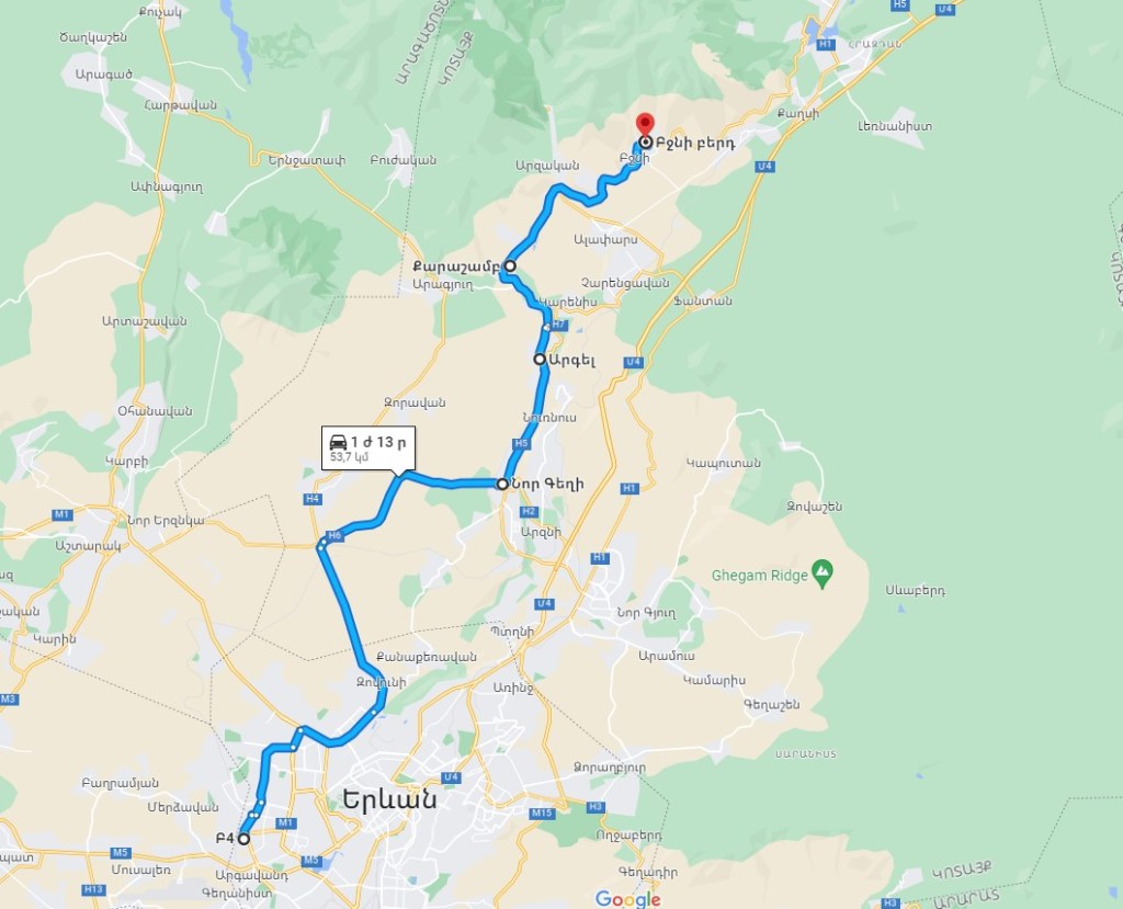 Երթուղի՝ Մեկնումը՝ Սուրբ Երրորդություն եկեղեցու բակ-Արտաշատ- Երասխ-Արենի- Գետափ-Շատին-Եղեգիս-Հերմոն-Արատես Վերադարձը՝ Արատես-Հերմոն-Եղեգիս-Շատին-Գետափ-Արենի-Երասխ-Արտաշատ-Սուրբ Երրորդություն եկեղեցու բակ