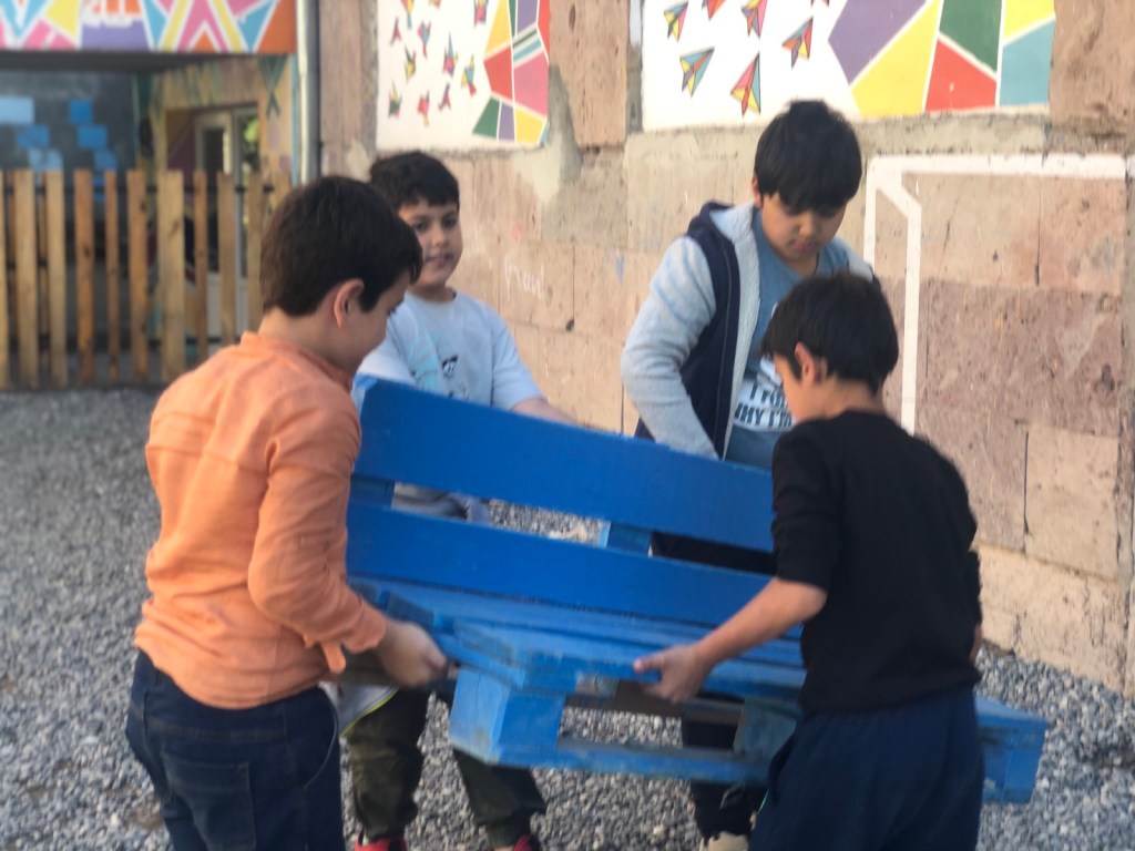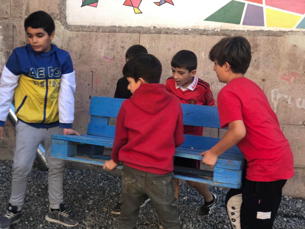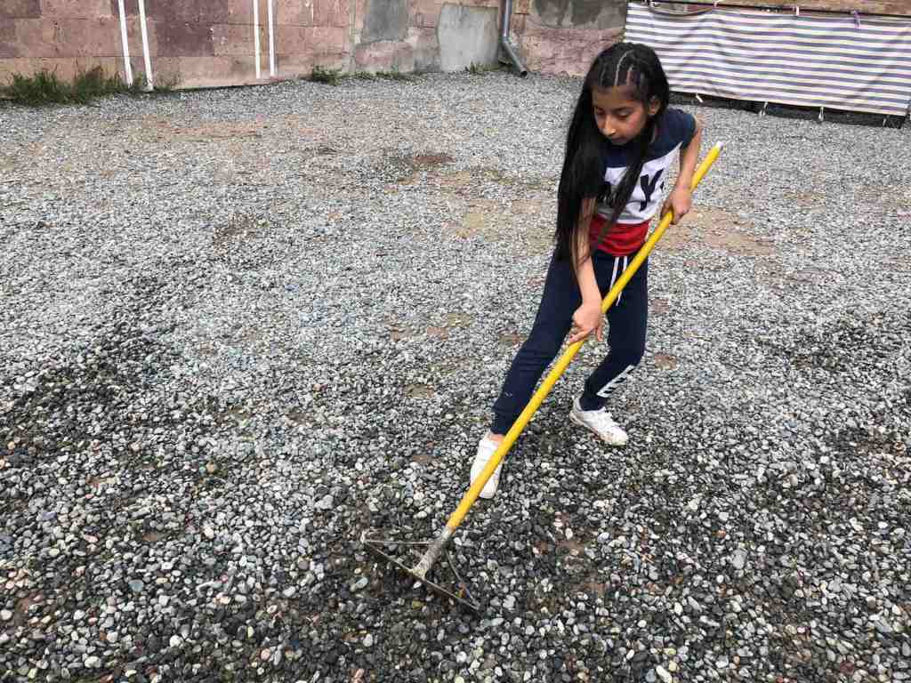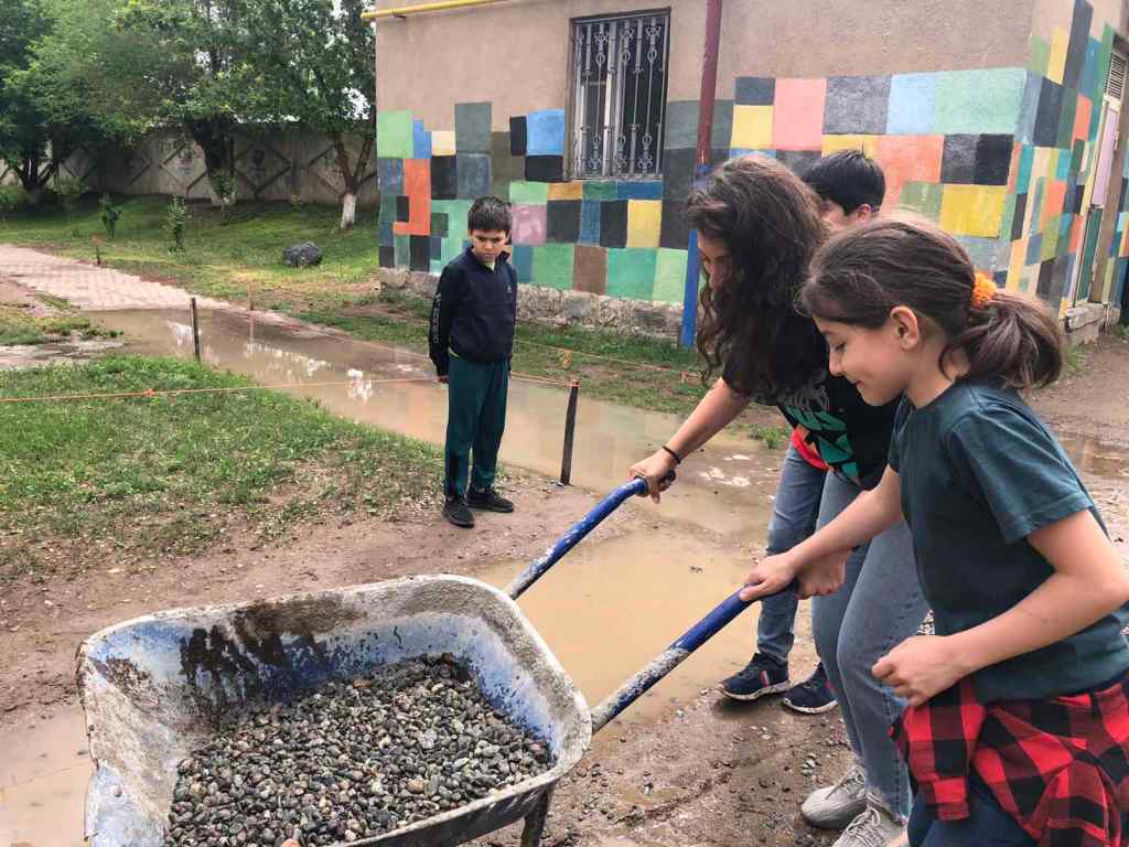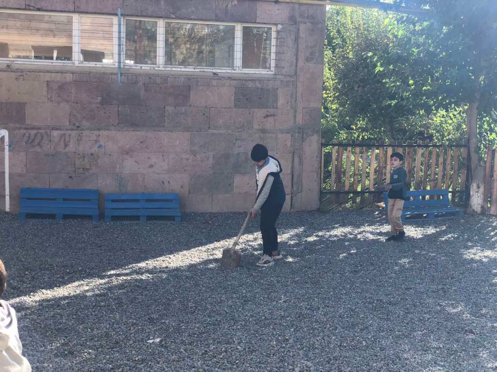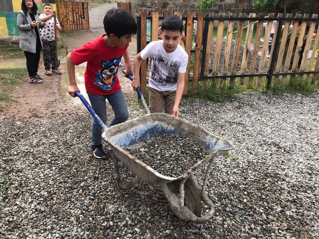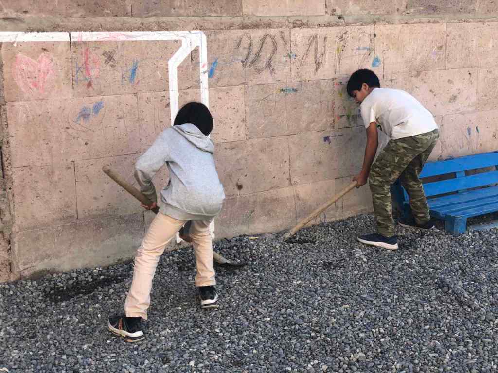 Արևմտյան դպրոցում աշխատանքային եռուզեռ է։ Բաժանվելով աշխատանքային խմբերի, սկսեցինք աշխատանքը հետևյալ ուղություններով՝ արդեն հարթեցված փայտյա տարածքները լաքապատեցինք, այգեպան Հրանտ Գիժալարյանի հետ կատարեցինք բակային աշխատանքներ։