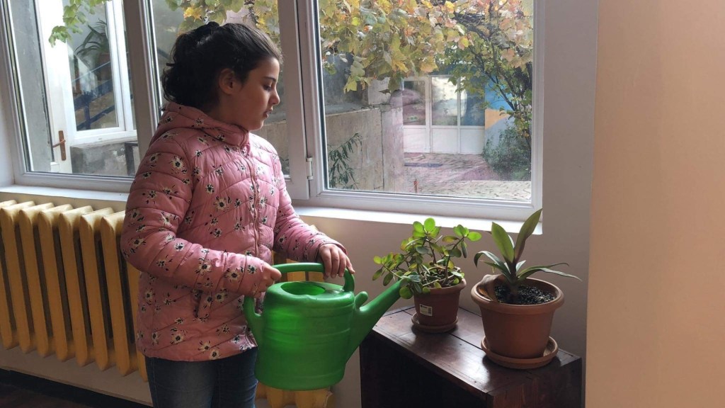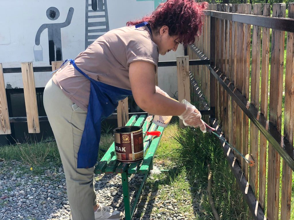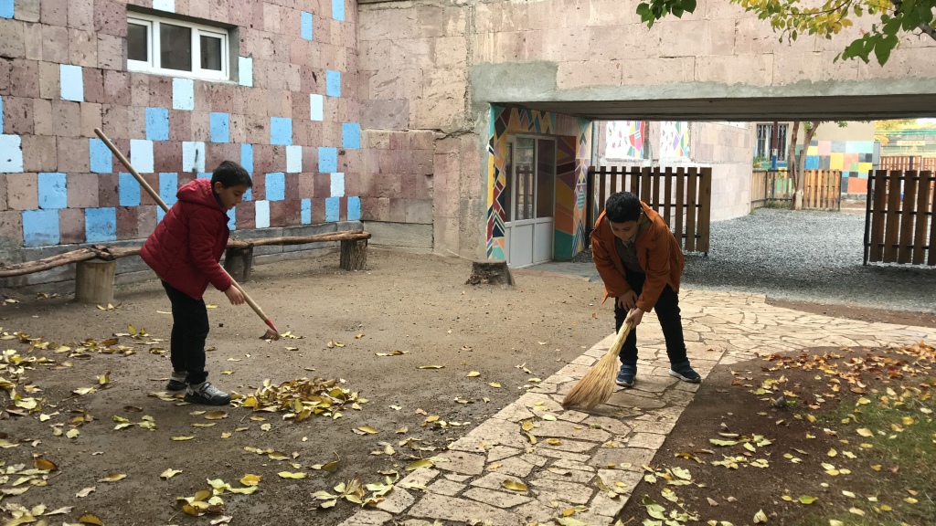 Այնուհետև իրականացրեցինք միջավայրի խնամքի աշխատանքներ։ Սովորողներից մի քանիսը ընկեր Սոնայի հետ մաքրեցին բակը աղբից, թափված տերևներից, իսկ մյուսները ինձ հետ խնամեցին ծաղիկները։ Որից հետո օգնեցին ընկեր Մադլենին կարգի բերել հեծանվային ակումբը։